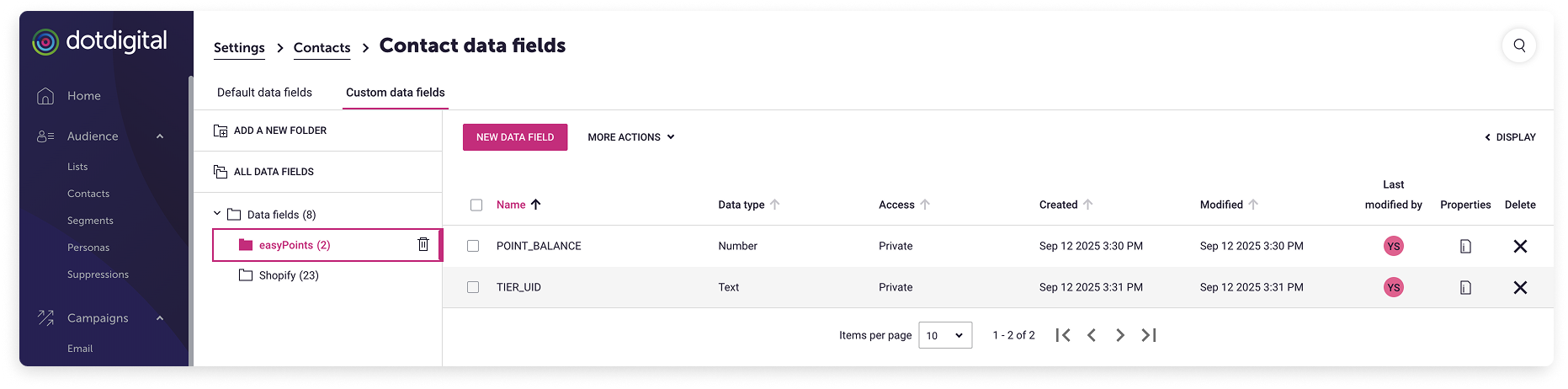 By using the Shopify integration feature of dotdigital, you can sync easyPoints data such as point-related information to dotdigital’s customer custom fields.
