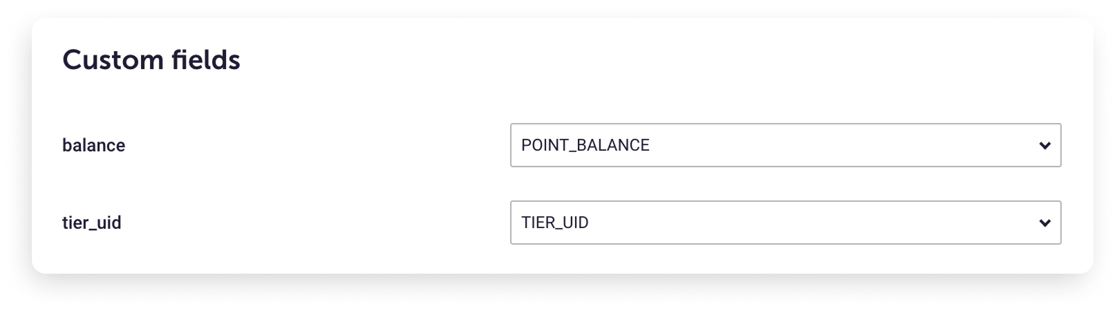- POINT_BALANCE(For syncing point balance): Data type = Number