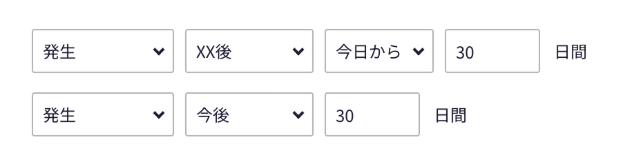 データフィールドに有効期限を設定し、以下のように発生の日時を~日後や、今後~日などに設定いただくことで有効期限に基づくアカウントのセグメントが可能です。