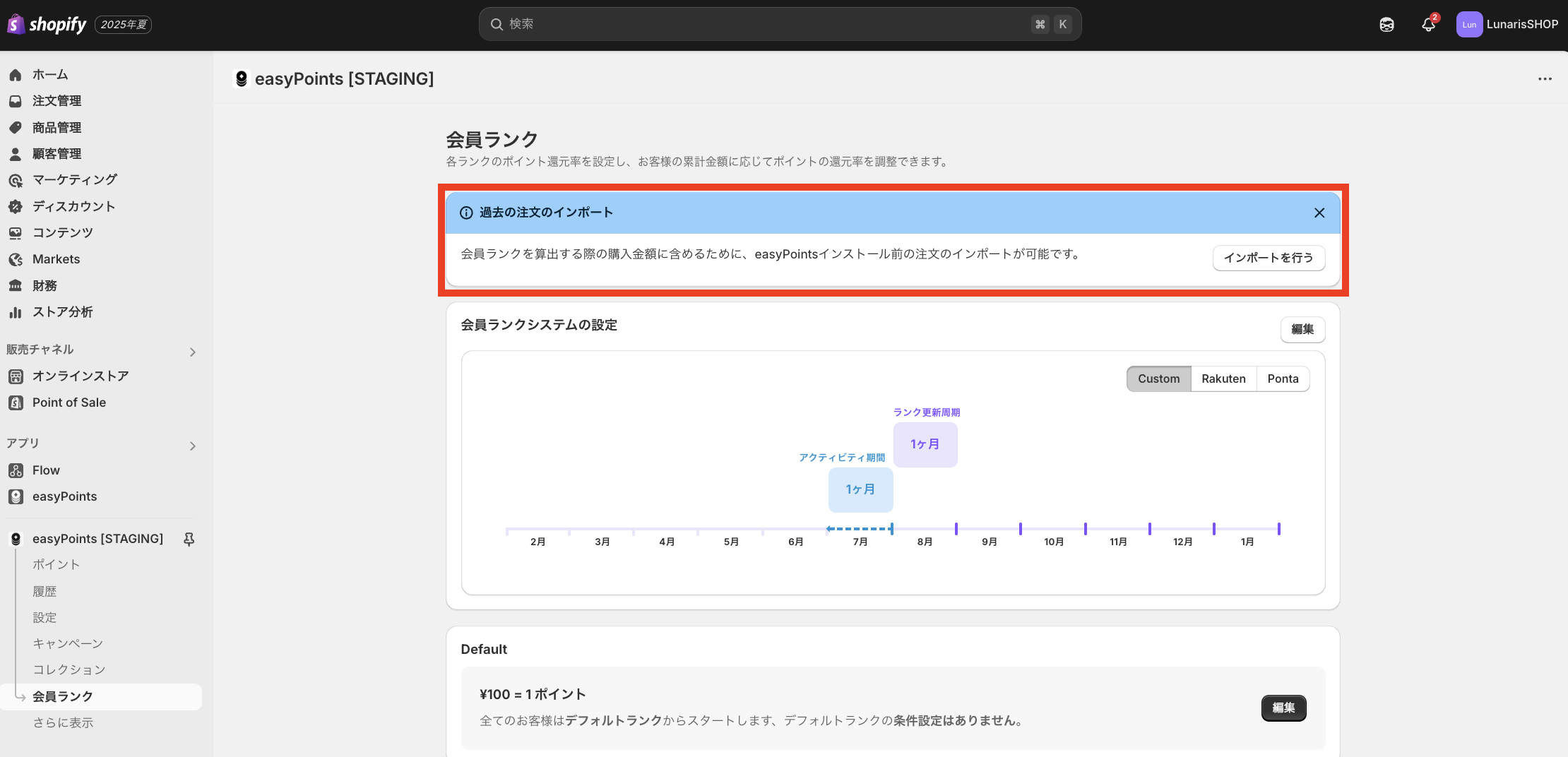 ※本機能は2025年8月7日以降インストールを行なったユーザーのみに表示されます。2025年8月7日以前にインストールを行なったユーザー様でご希望の場合は弊社easypoints@lunarisまでお問い合わせください。